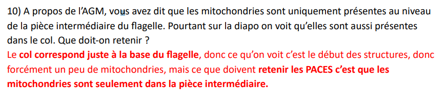 Dans le cours il est marqué que la pièce intermédiaire est la seule à comporter des mitochondrie, mais sur le schéma on peut voir qu'il y en a dans le col et il me semble que le prof avait dit lors de la sdr de l'année dernière que c'était bien le cas. Du coup que doit-on retenir ?