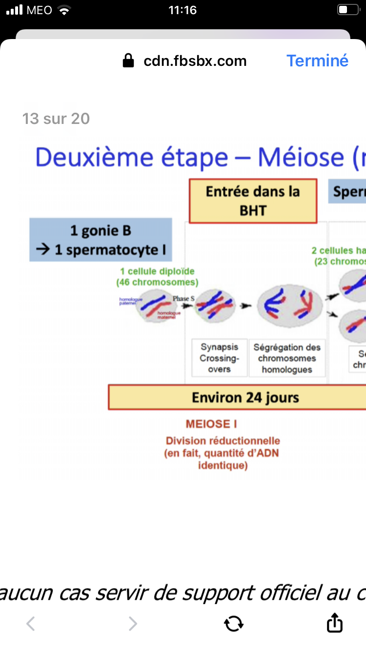 Le prof a mis 2 diapo qui se contredisent… dans l’une il dit qu’une spermatogonie B donne un spermatocyte 1 et dans l’autre 2 spermatocyte 1