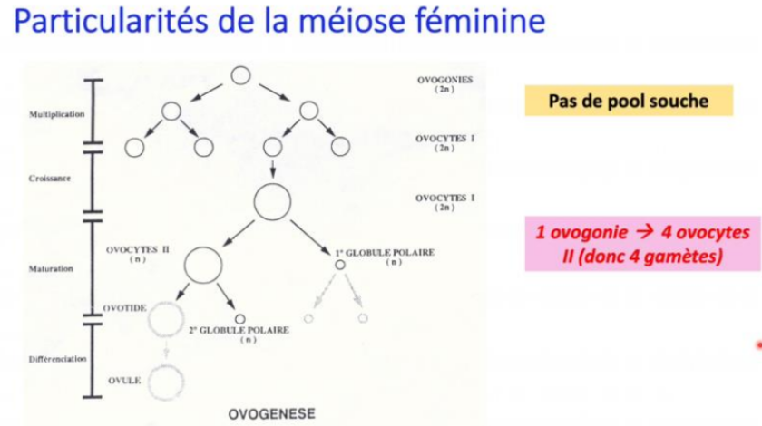 Bonjour, j'arrive pas vraiment à comprendre pourquoi 1 ovogonie donne 4 ovocytes II, pour moi c'est un ovogonie donne deux ovocytes I qui donnent eux même chacun un ovocyte II et un premier globule polaire. Du coup on a finalement que 2 ovocyte II non ?