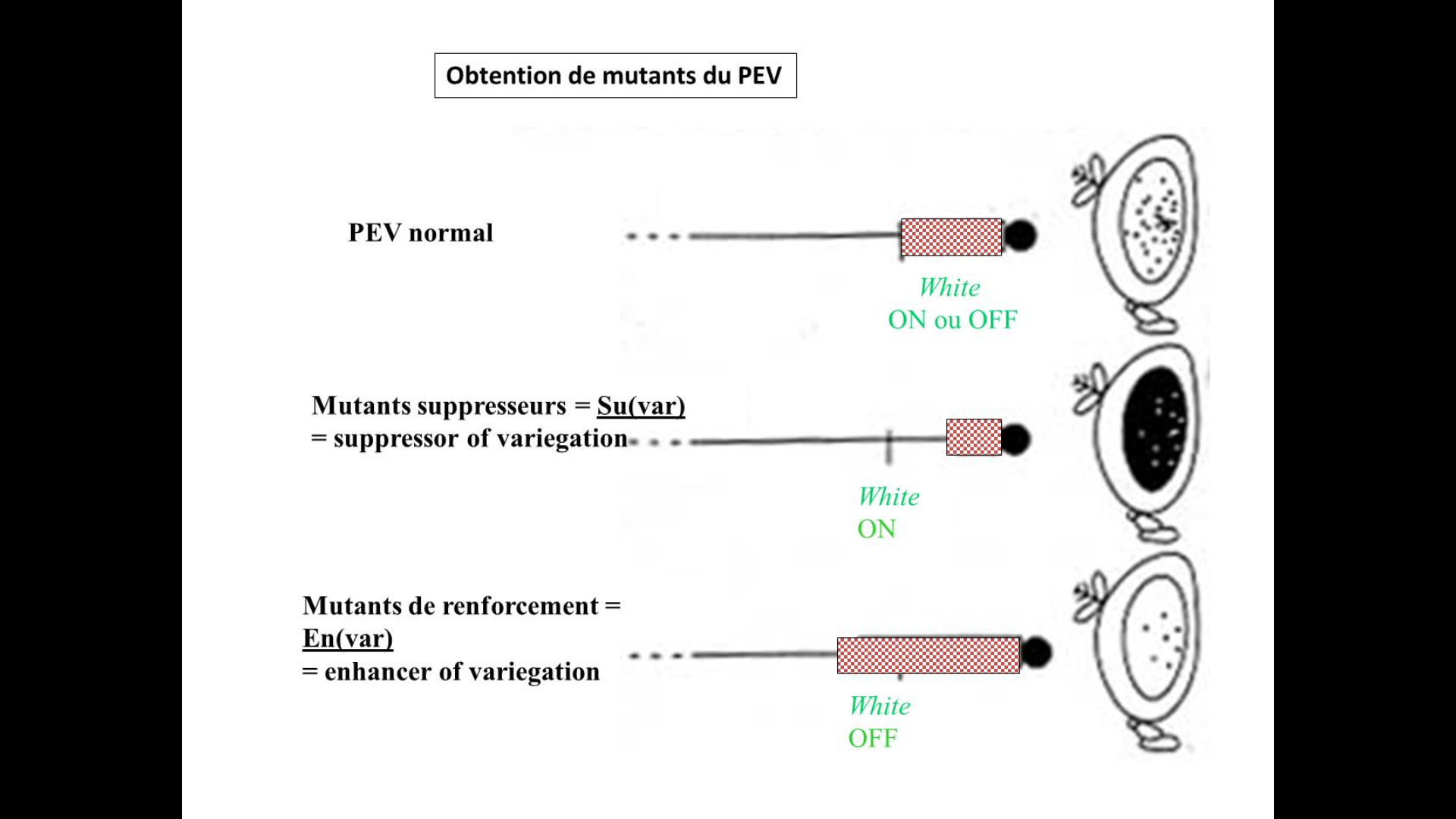 Aussi quand il parle du trosième oeil il dit "C'est des mutations En(var) et qui vont donc définir des gènes qui vont d'une certaine façon contrecarrer l'effet de l'hétérochromatine", c'est justement pas l'inverse ? Le nom "enhancer of varigation" montre que c'est un renforcement de la propagation de l'hétérochromatine (?). De plus on voit sur l'image que l'hétérochromatine s'est propagé et que le gène white est OFF.