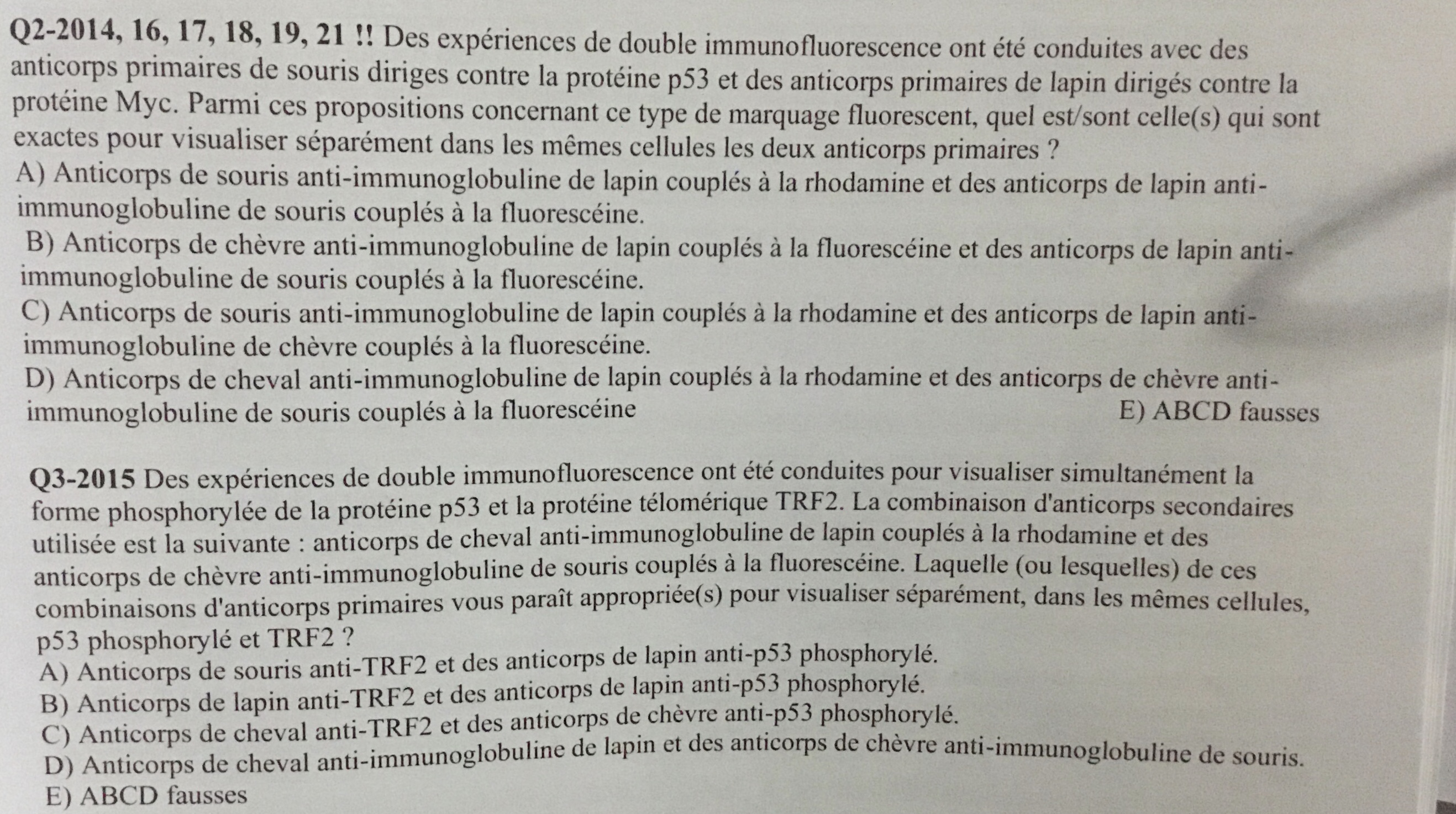 Re: résolution QCM experiences de double fluorescence
