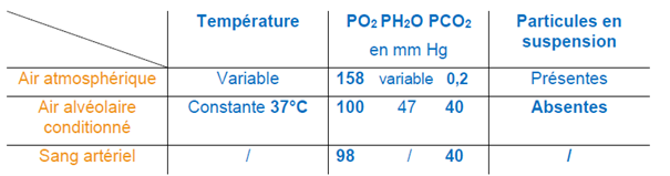 je pense qu'il y a une petite erreur au niveau des valeurs données dans le tableau pour la PO2 : 158,100,40 mmHg et pour la PCO2: 0.2,47,98 mmHg puisque par la suite dans les schémas expliquant l'hyperventilation les valeurs sont 158,100,98 et 0.2,40,40 mmHg :question:
