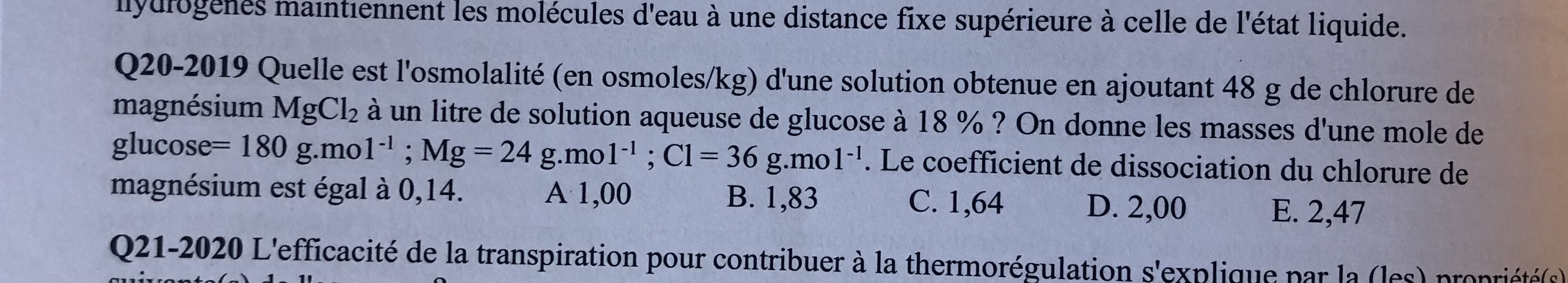 osmoles/Kg il faudra à un moment diviser par 0,820 nos résultatsMgCl2