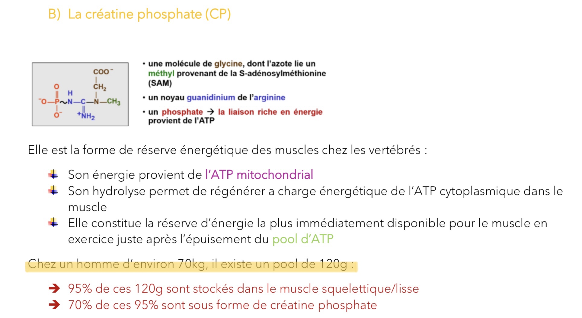 Cependant le prof a corrigé et relu et il l’a tout de même compté vrai*, il n’y a pas vraiment de piège entre créatine et créatine phosphate. Par contre il faudra bien faire la distinction entre créatine (phosphate) et créatine phosphoKINASE.