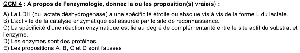 J’ai fait un vieux DM sur le cours Enzymologie 1 et un item me pose problème: