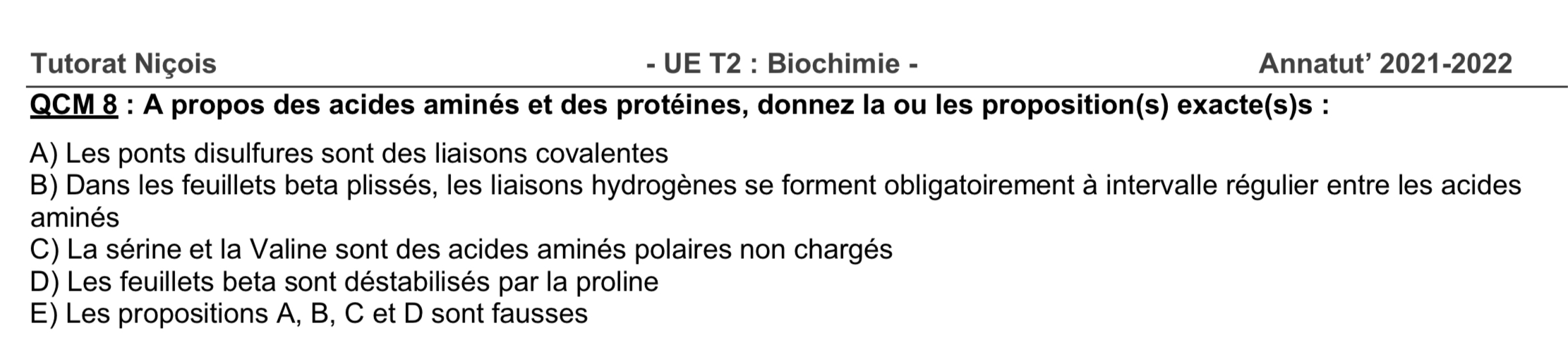 La B est compté juste mais c’est pas plutôt les hélices alpha qui des liaisons hydrogènes à intervalles réguliers et que c’est justement une des choses qui les différencient des feuillets beta ??