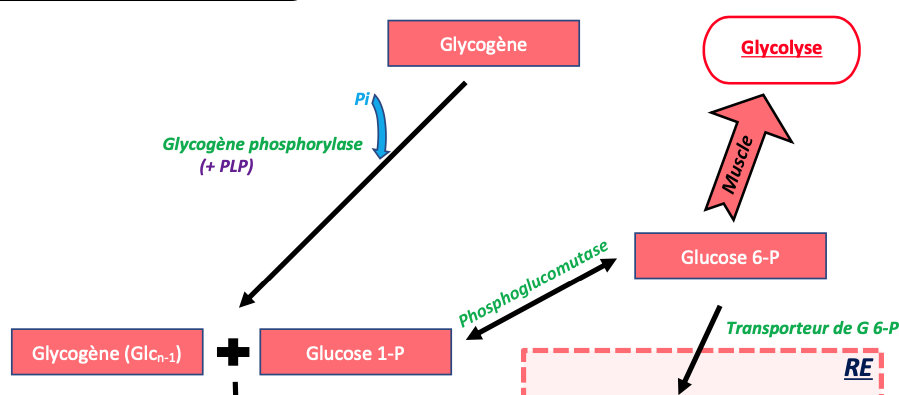 glycolyse, grâce à la glycogénolyse qui produit directement du glucose 6-phosphate.