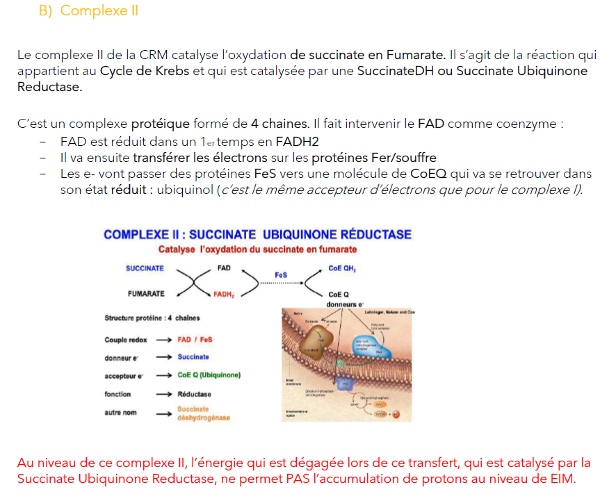 "La reoxydation du FADH2 au niveau du complexe 2 constitue la seconde porte d'entrée des équivalents réducteurs dans la chaine respiratoire", il est compté vrai