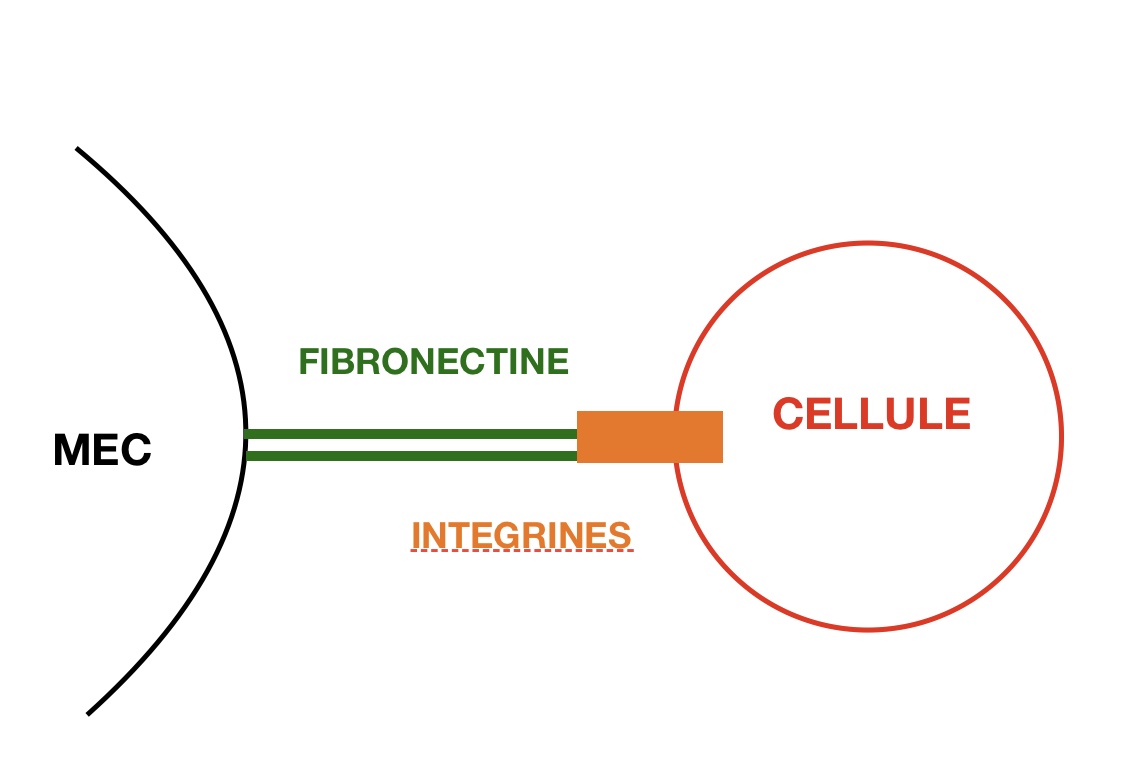 Premièrement, je ne comprends pas où est fixée la fibronectine sur les schémas du cours et donc je ne comprends pas trop son rôle.