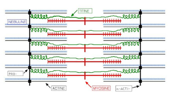 Je ne comprends pas quelque chose : dans le cours il est dit que la bande I est exclusivement constituée de myofilaments fins. Or, on nous dit après que la titine ancre les myofilaments épais à la strie Z, il y a donc des myofilaments épais dans la bande I ??