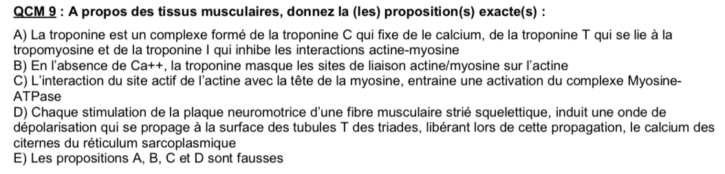 Je sais que dans votre cours cette année il y a écrit : La troponine I : elle masque le site de liaison à la myosine situé sur l’actine.