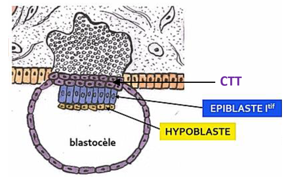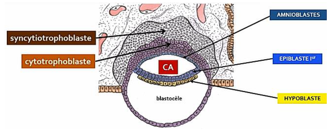 Déjà attention, je ne sais pas quelle fiche tu as étudié, mais la cavité amniotique ne se forme pas au niveau des cellules épiblastiques, mais plutôt au niveau des cellules du CTT.