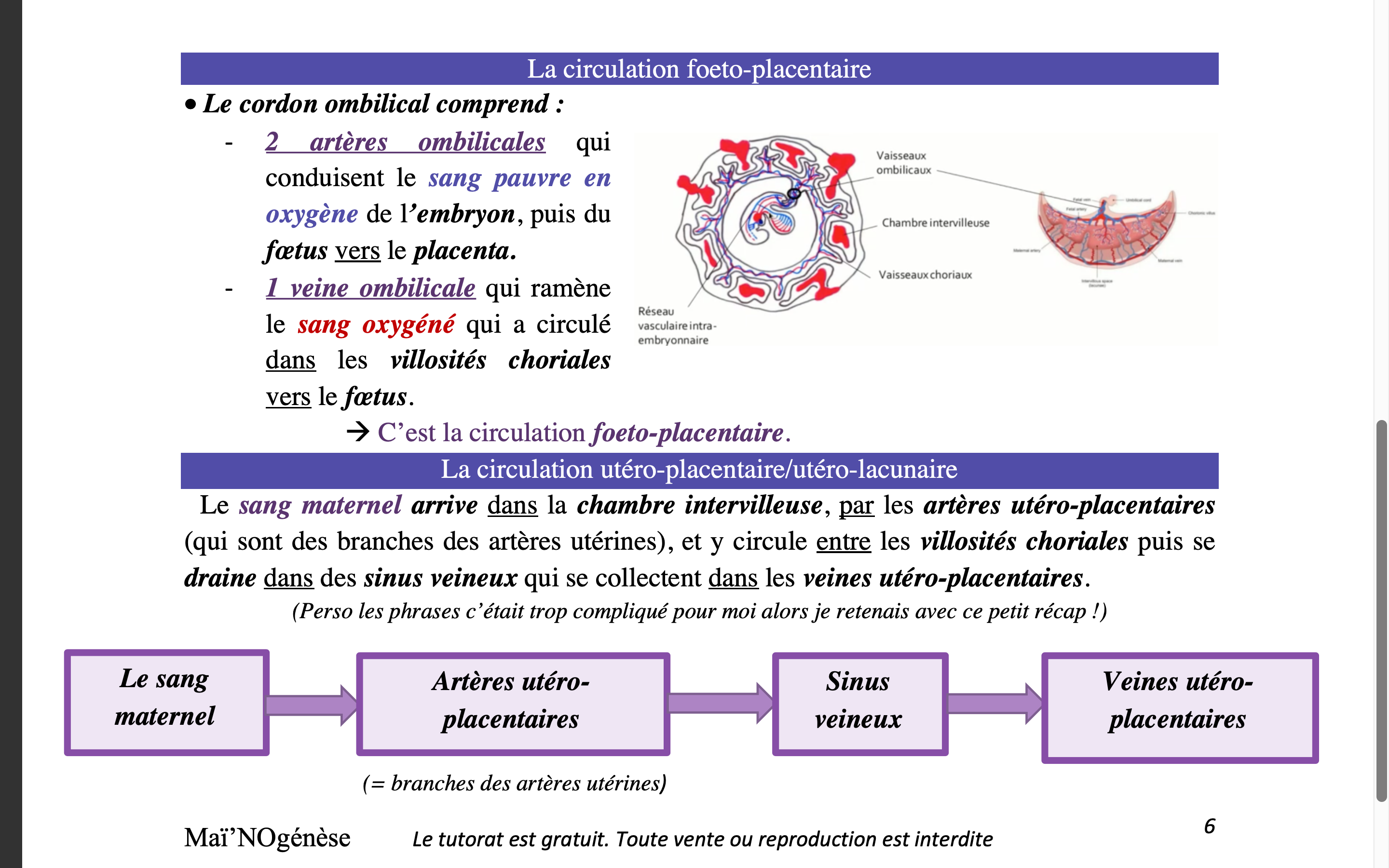- la circulation foeto-placentaire => implique le cordon ombilical