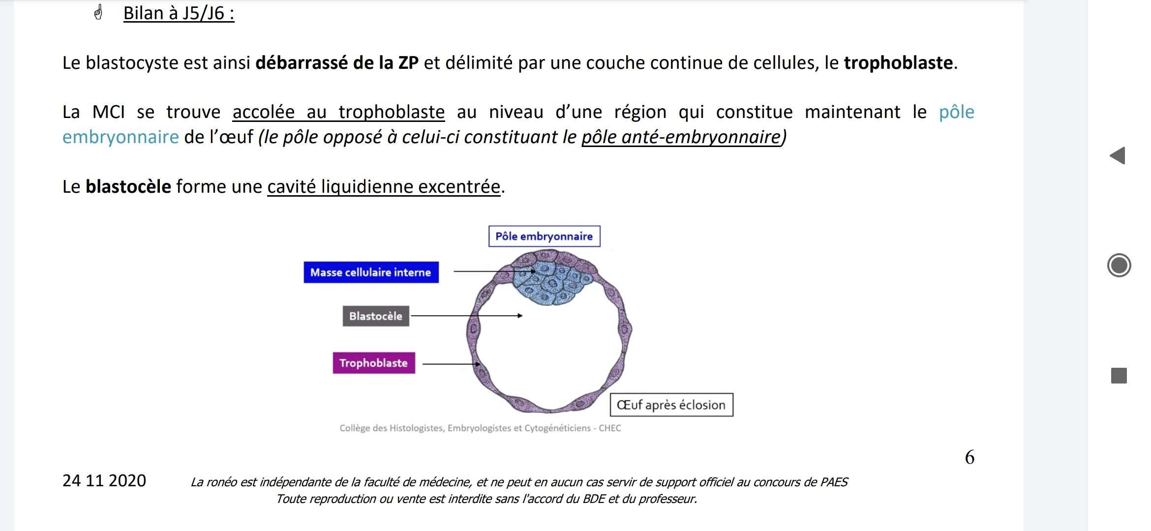 Et comme l'a précisé Guillaume, c'était pour vous piéger sur la présence ou non de la ZP, quand dans un item on dit que l'embryon est libre , on ne peut vous dire après qu'il a sa Zone pellucide, c'est contradictoire