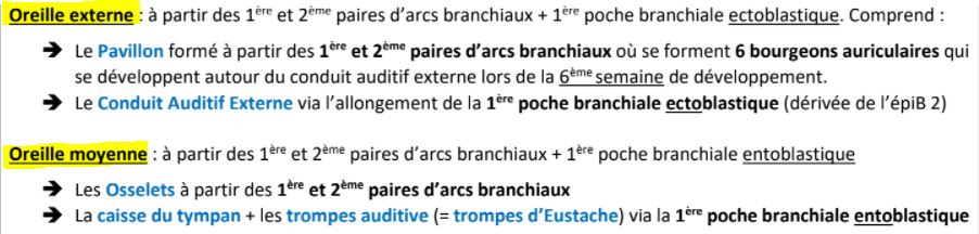 De plus, si l'énoncé incluait également l'ectoblaste, pour moi il aurait fallut dire la 1ère poche ectoblastique ET les arcs branchiaux 1 & 2 pour que ce soit juste. Sinon on peut seulement parler du Conduit Auditif Externe qui lui est fait à partir de la 1ère poche branchiale ectoblastique.