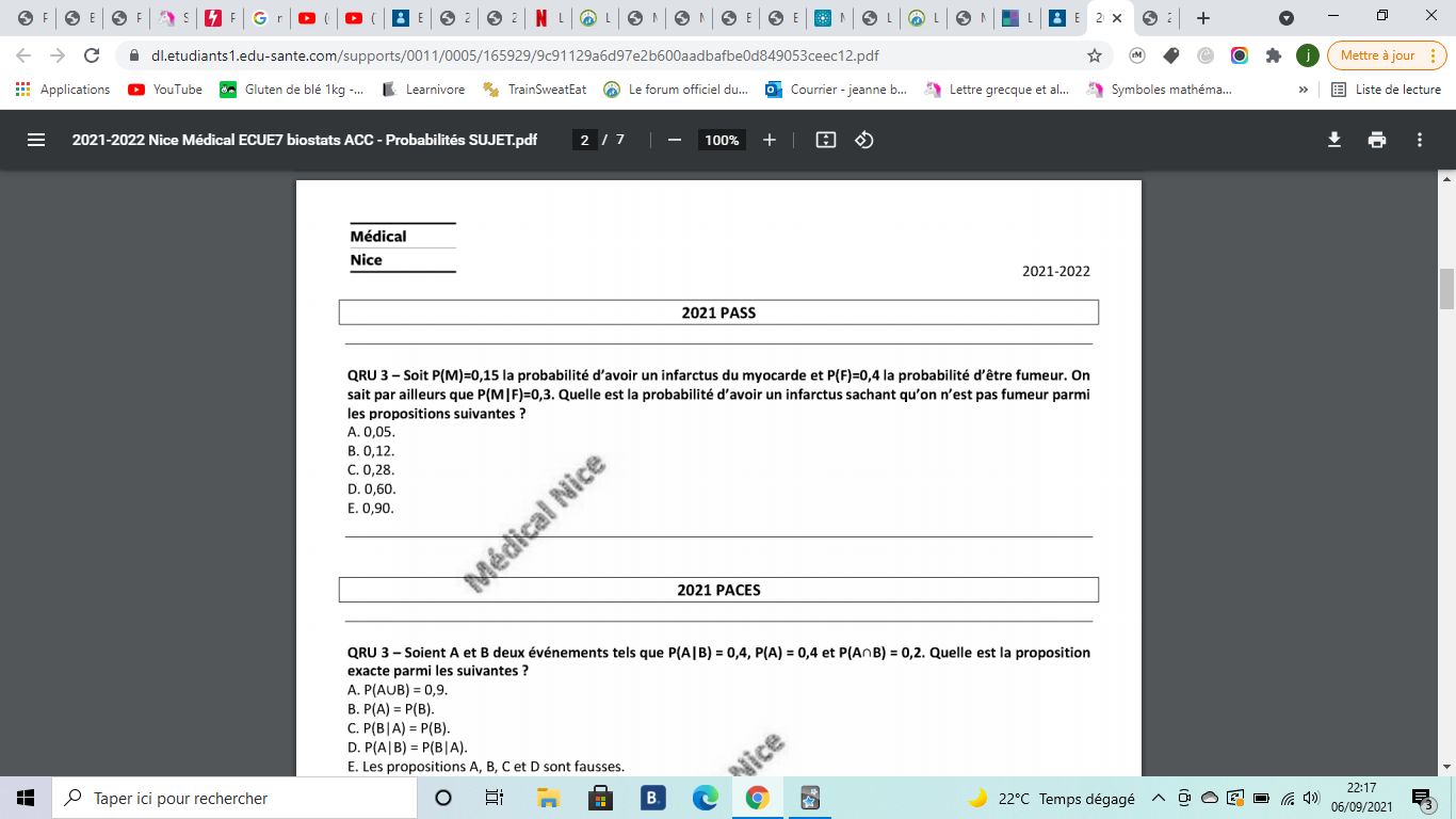 Donc d’après le théorèmes des probabilités totales, P(M) = P(M∩F) + P(M∩CF).