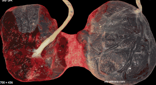 - le cas où les placentas sont fusionnés mais séparés par une membrane inter-placentaire