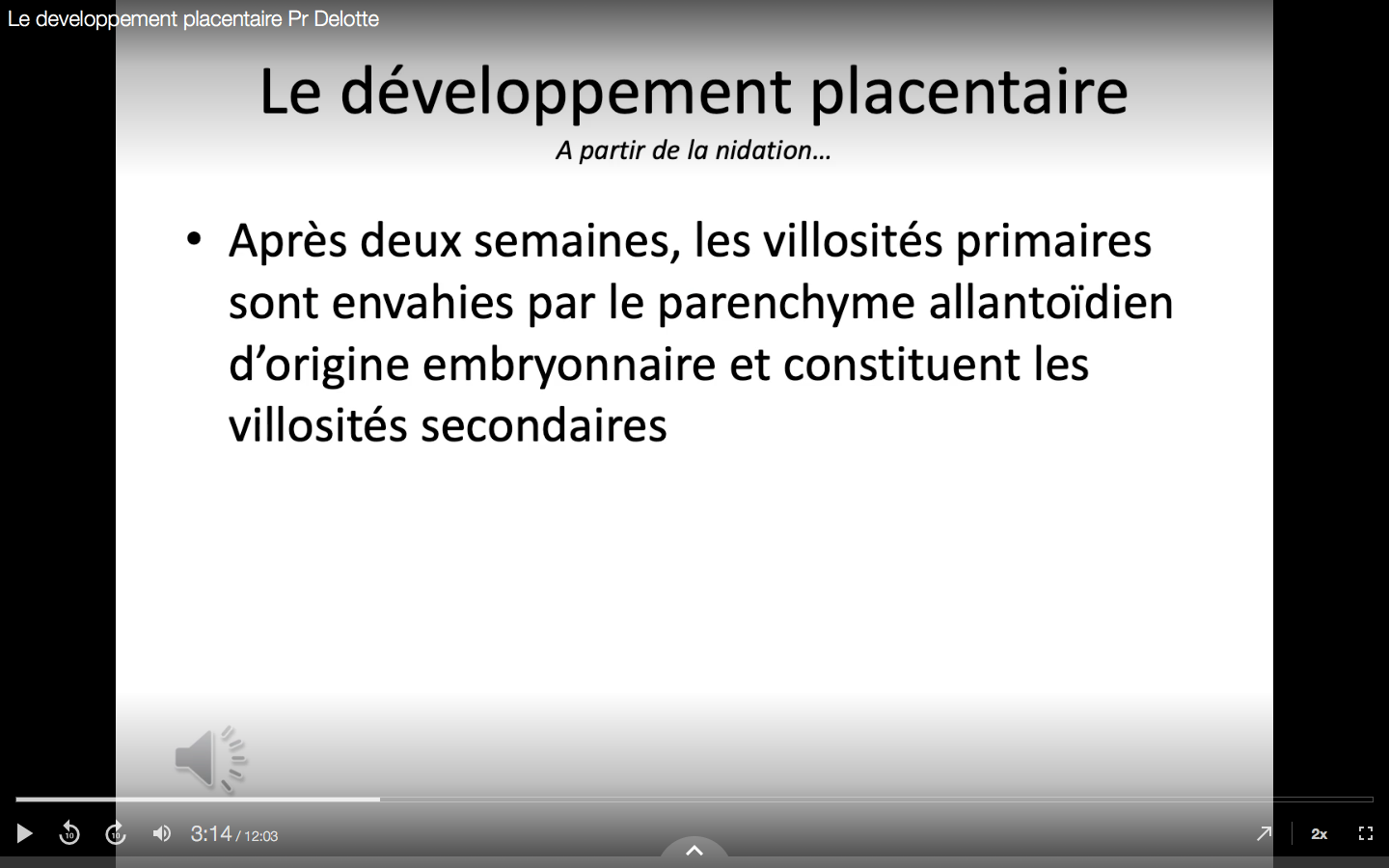 "Dès 2 semaines après la conception, les villosités primaires sont envahies par le parenchyme allantoïdien d’origine embryonnaire"