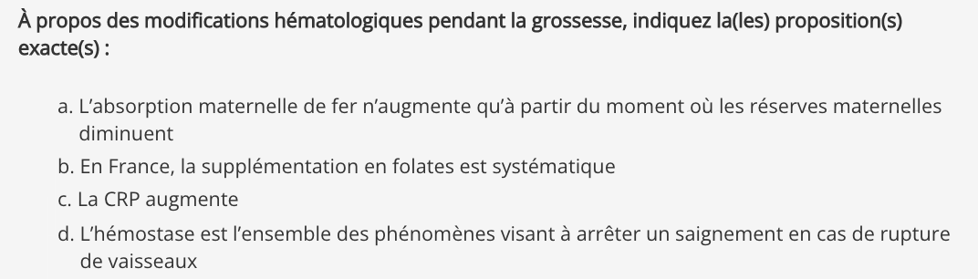 Alors certes folate et fer c'est pour l'hème mais pour moi les modifs hématologiques c'est pas ça dans le cours