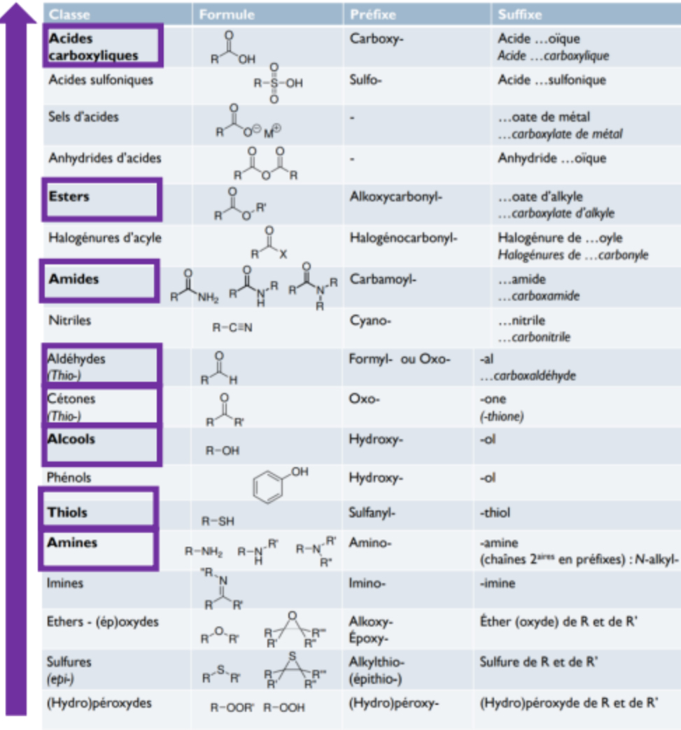 "dans le tableau que la fonction halogène est prioritaire sur la fonction amine non ?"