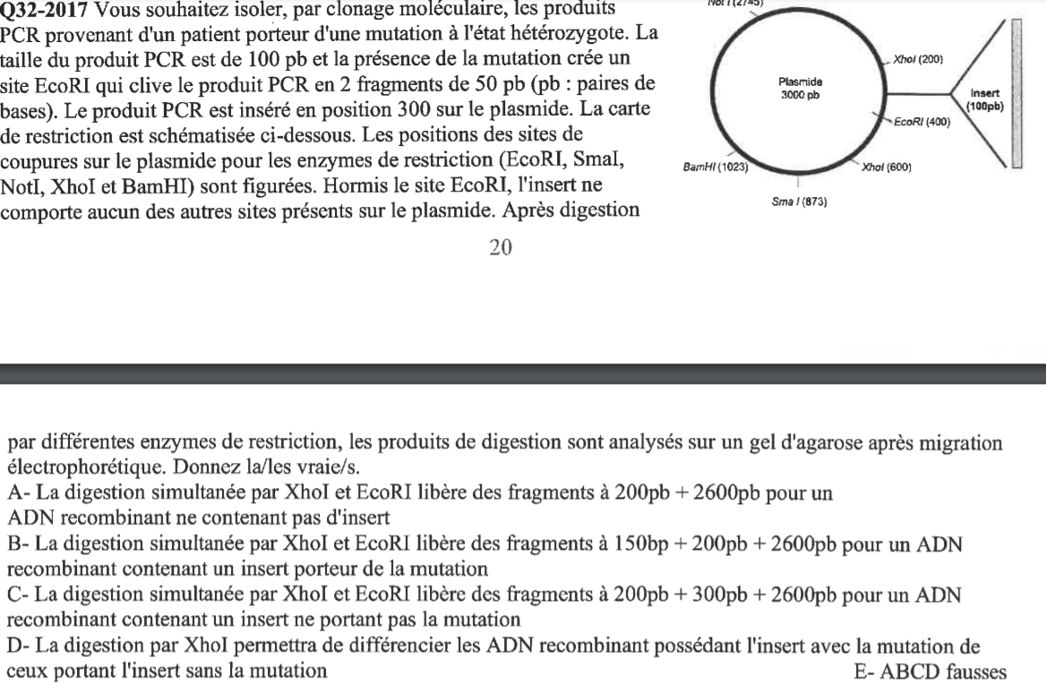 Car pour moi, comme il n'y a pas de site XhoI présent sur l'insert lors de la mutation, alors on ne peut pas savoir si le vecteur présente l'insert muté avec seulement Xhol?