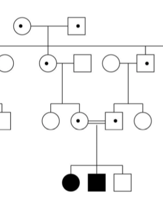 (j'ai essayé de trouve un autre arbre que celui du cours mais ceux sur internet sont pas comme ceux de la prof, donc j'ai repris celui la)(Imagine que dans la génération I il n'y a qu'un seul porteur sain, l'autre n'a pas la mutation). Tu te retrouves donc avec la mutation qui sera transmise mais personne ne sera malade car la probabilité que les deux allèles mutés pour la meme mutation se retrouve est faible. MAIS au sein de la famille cet allèle muté circule! Si tu regardes la IIIeme génération, tu vois qu'ils n'avaient pas la maladie (ils sont juste porteurs) donc tout est ok mais comme ils sont de la meme famille cette muation a circulé et malheureusement ils l'ont tous les deux. Ce qui explique pourquoi les enfants sont atteints