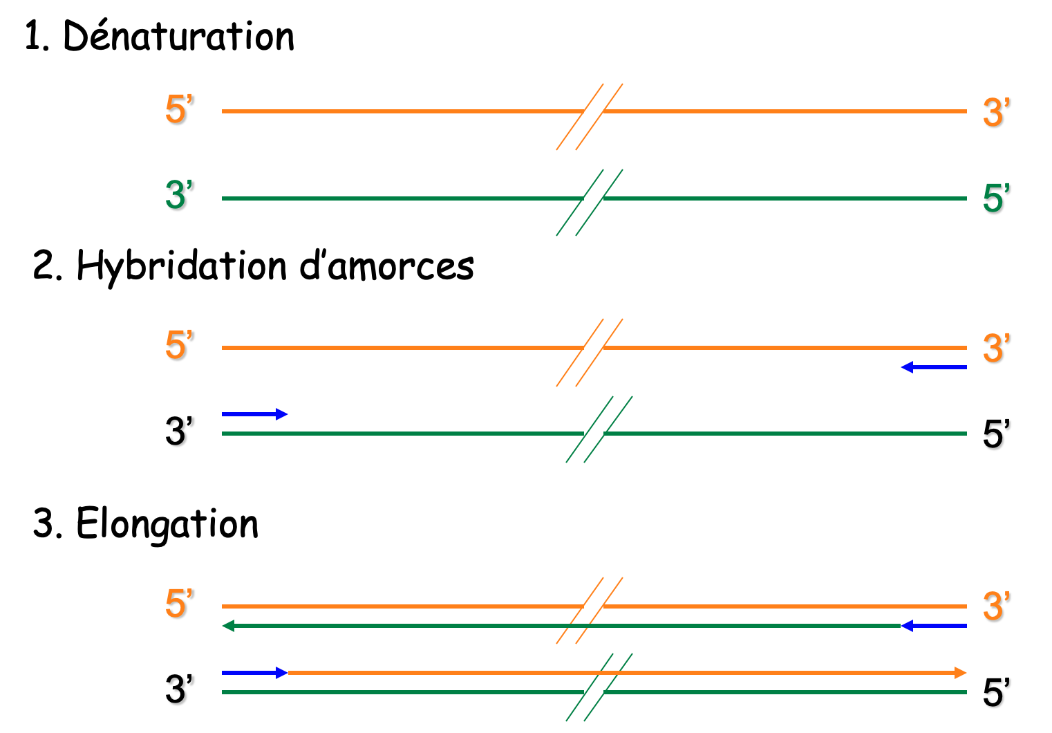 On a donc besoin de 2 amorces différents, une pour le brin sens, une autre pour le brin reverse.