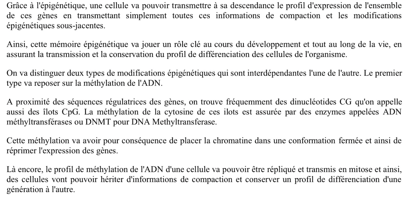 Alors je pense qu’ici sous-jacent est utilisé pour englober toutes modifications épigénétiques qui existent dans la cellule.