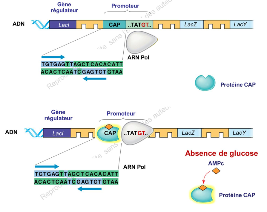 Non la protéine CAP se fixe bien sur la séquence CAP. C'est une séquence qui est juste avant le promoteur. La présence de cette protéine sur cette séquence aide la fixation de l'ARN polymérase sur le promoteur cette fois ci ! Je te laisse regarder ce schéma, je le trouve assez clair !