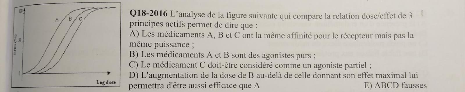 Les médicaments A, B et C n'ont pas la même affinité (affinité de A > B > C), ainsi ils n'ont pas la même puissance :P