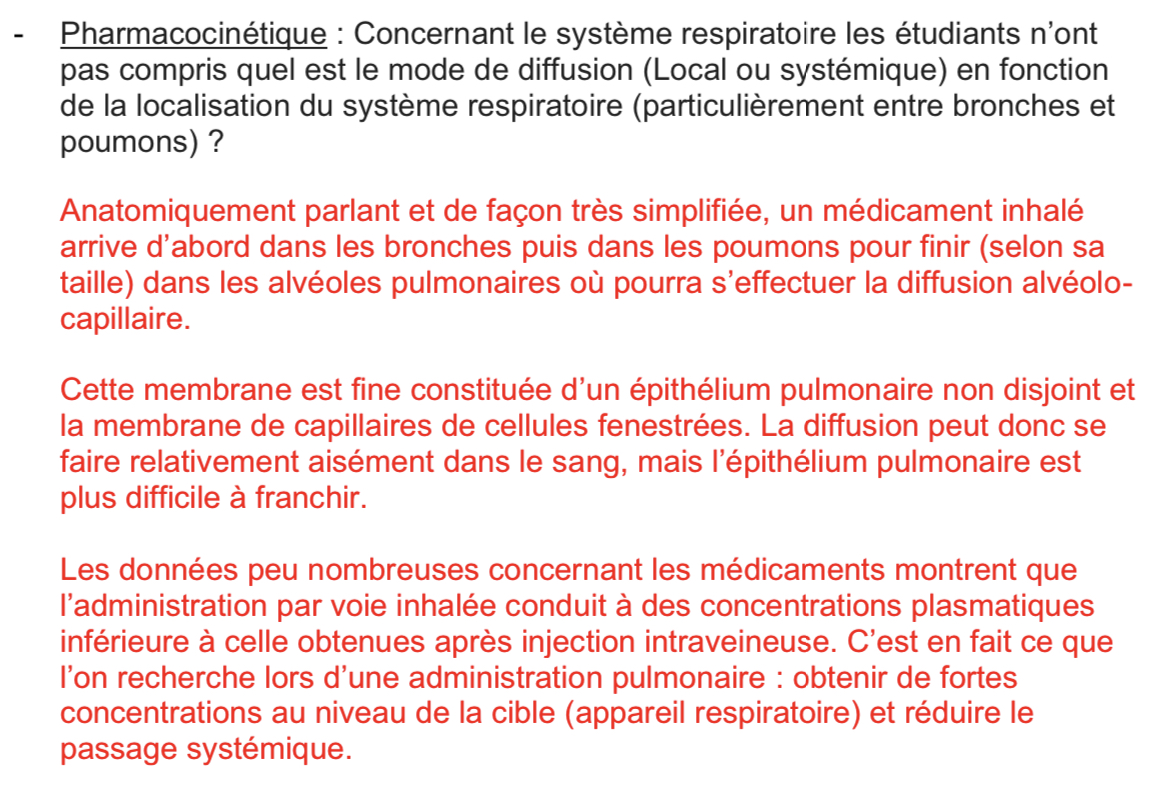 Salut alors je pense qu’il veut vous faire comprendre que pulmonaire, il peut y avoir une partie qui diffuse en systémique mais ce qui nous intéresse c’est le côté local pour les traitements de l’appareil respiratoire. Après il répond pas à tout là, C’est chiant…