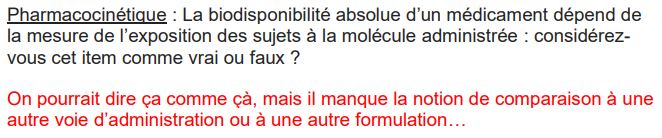 - biodisponibilité absolue d’un médicament dépend de la mesure de l’exposition des sujets à la molécule administrée : Faux