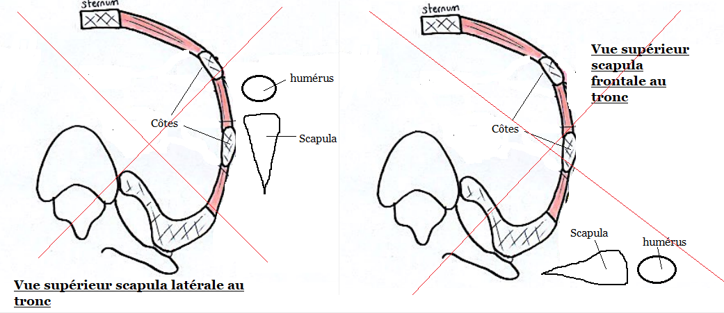 Comme tu peux le voir, la scapula normale n'est pas latérale au tronc, car elle est situé en arrière de la cage thoracique.