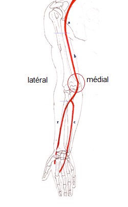Cc! Svp je ne comprends pas trop cette phrase: concernant l'artère humérale, "on place le stéthoscope médialement"