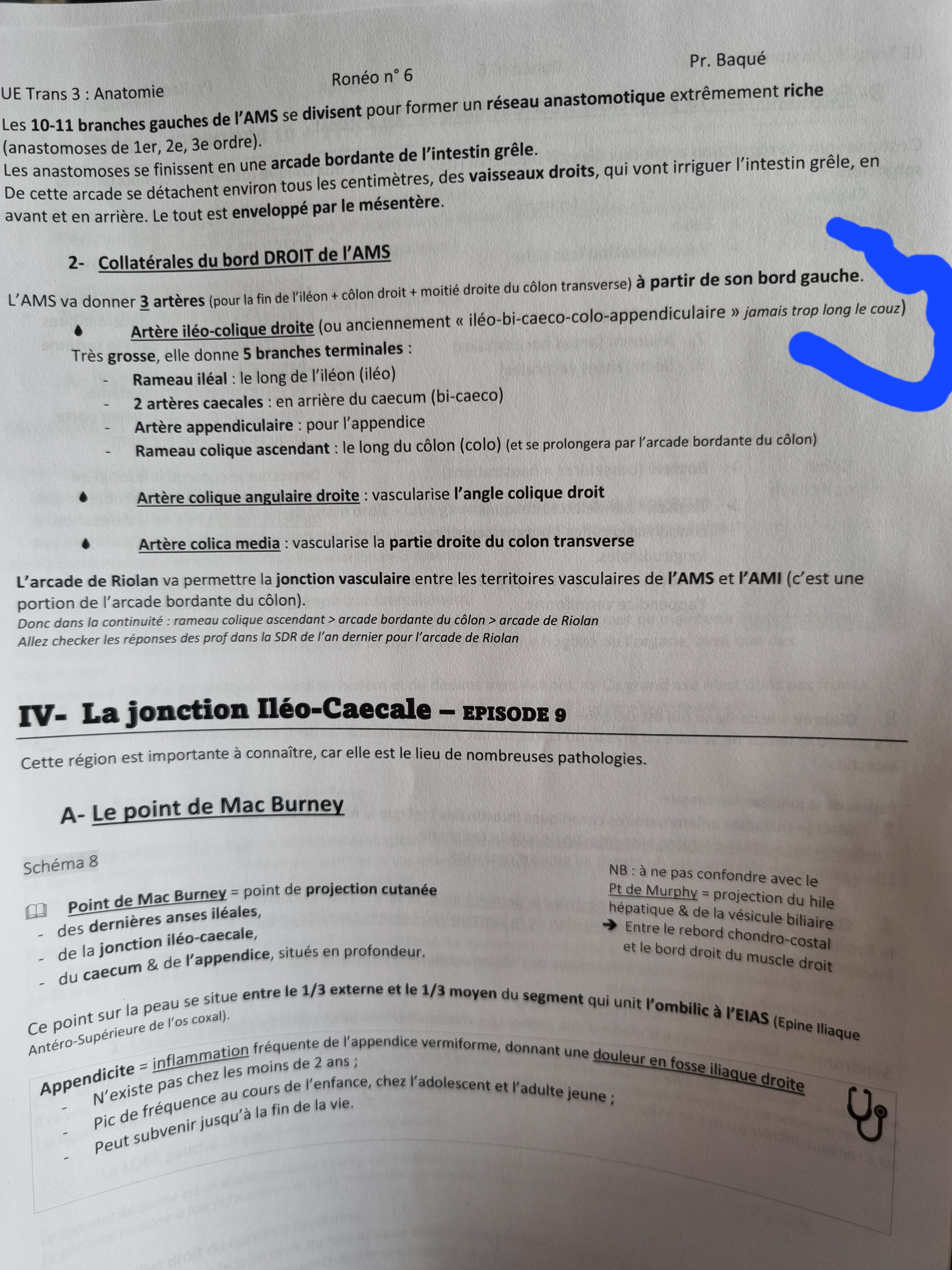 Bonjour, dans la ronéo sur le digestif partie 2.. le titre est collaterale du bord droit de l'AMS mais juste en bas il y a ecris l'AMS va donner 3 arteres à partir de son bord gauche.