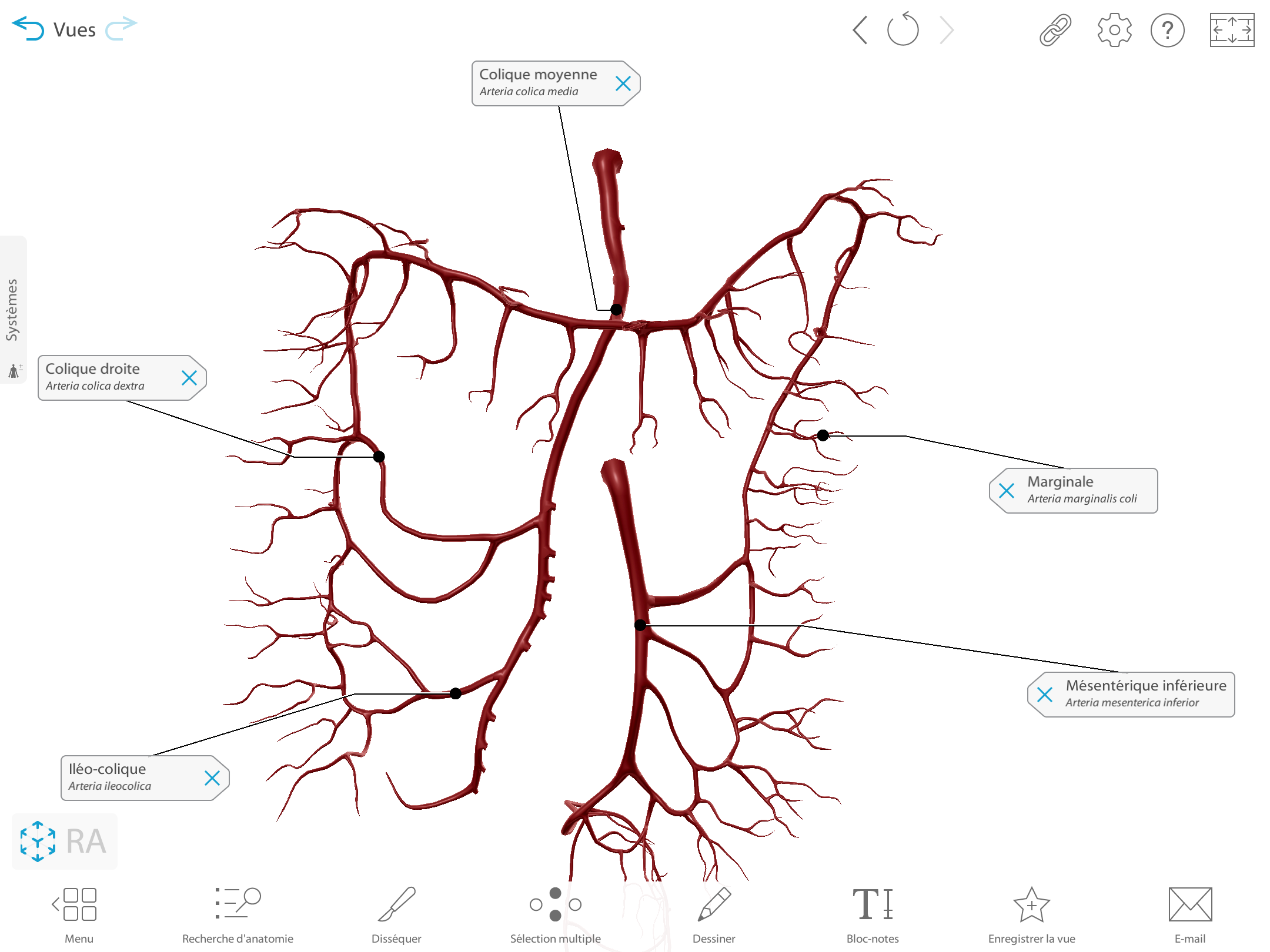 Donc vraiment je comprends pas psk pour moi c’est pas la version de la SDR 😢 même si le rameau colique ascendant fini par devenir l’arcade de Riolan (d’où le pas encore) elle est au niveau de la colica media...
