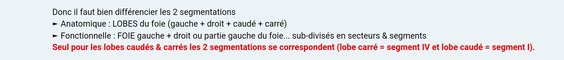 Il se trouve que certains segments correspondent à un lobes, c'est le cas du lobe carré (=segment IV) et du lobe caudé (=segment I) où on a une correspondance morphologique et fonctionnelle !