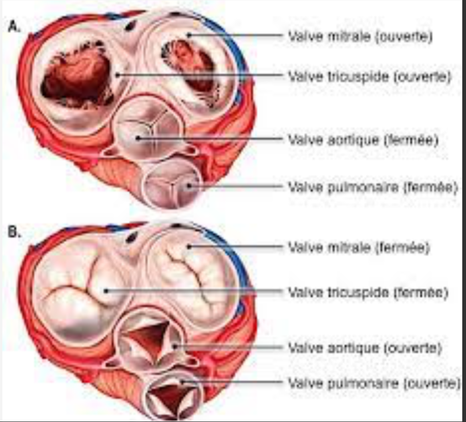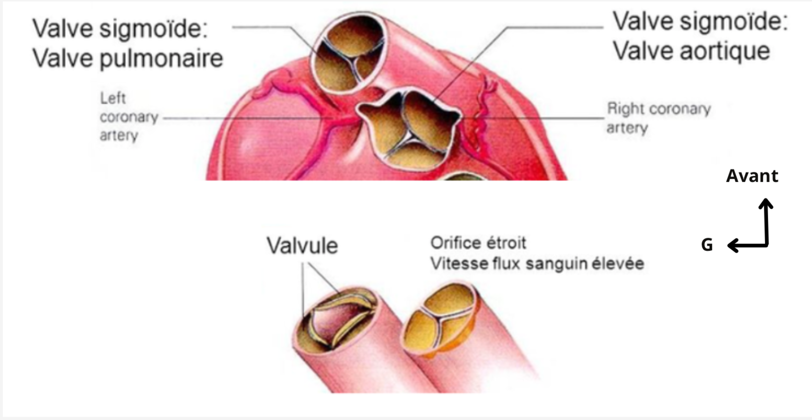 Comme tu le sais, les valves sigmoïdes (aorte / pulmonaire) et les valves atrio-ventriculaires (mitrale, tricuspide) ne possèdent pas les même particularités :