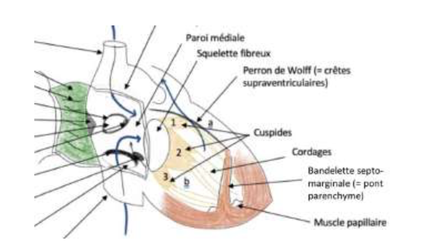 La bandelette septo-marginale (ansiforme) est une trabécule qui part de la paroi septale jusqu'à la paroi antérieure du ventricule droit.
