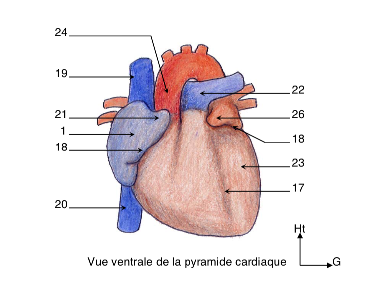 Dans son réf, Baqué dit bien que "L’auricule gauche (26) prolonge en avant l’atrium gauche" :arrow: visible sur une vue antérieure.