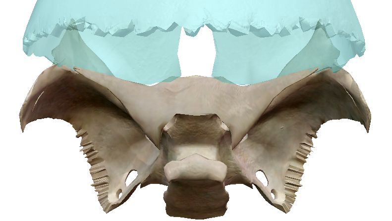 Sur une vue endocrânienne, tu vas avoir le frontal (ici aténué) qui va cacher la partie antérieure de la grande aile du sphénoïde, ce qui fait qu'on dit que sur une vue endocrânienne, le PAS est en avant de la GAS.