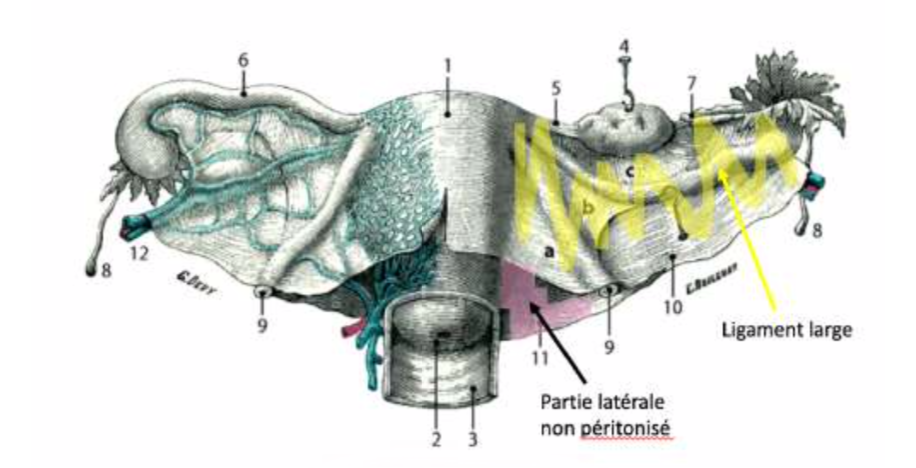 - Parties latérales de l'utérus = pas péritonisées