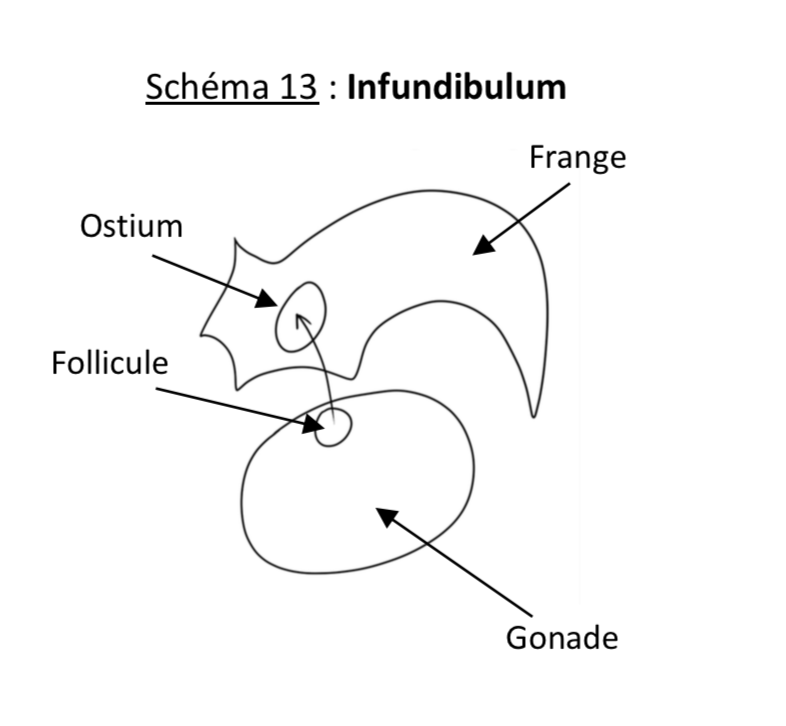 Donc l'ostium de l'infundibulum c'est l'orifice / le trou / l'ouverture du tube creux de la trompe sur l'extérieur. C'est l'orifice de la trompe qui est s'ouvre dans la cavité péritonéall, et qui est en contact avec la gonade.