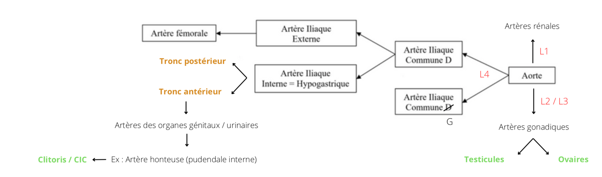 Dans cette partie de la fiche, tout ce qui se passe pour l'artère iliaque commune droite se passe pour la gauche :