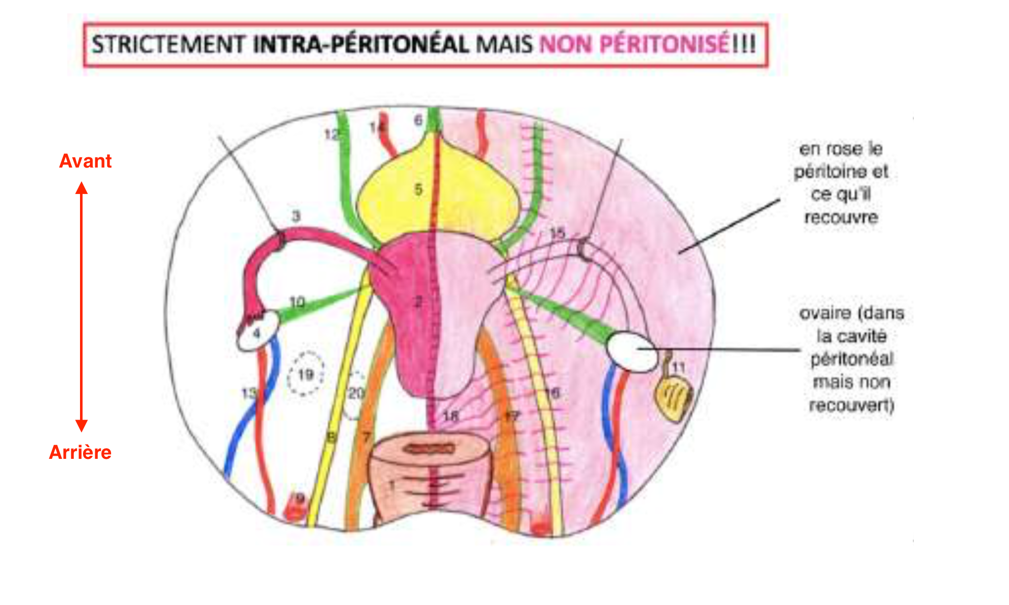 Comme tu peux le voir sur le schéma, les ovaires se trouvent plutôt en position
