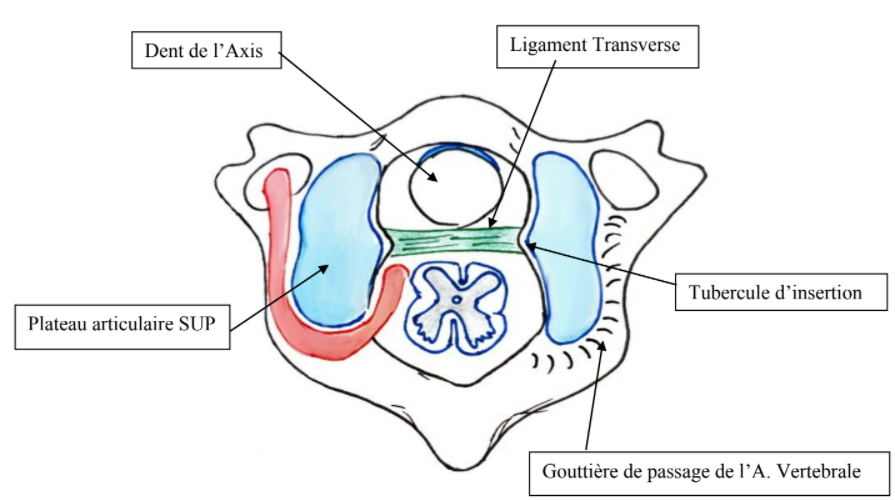 Svp je ne comprends pas cette phrase, concernant L'axis ou C2: " en arrière de l'odontoïde on a un ligament qui le bloque et l'empêche de toucher les ligaments nerveux qui sont juste en arrière"