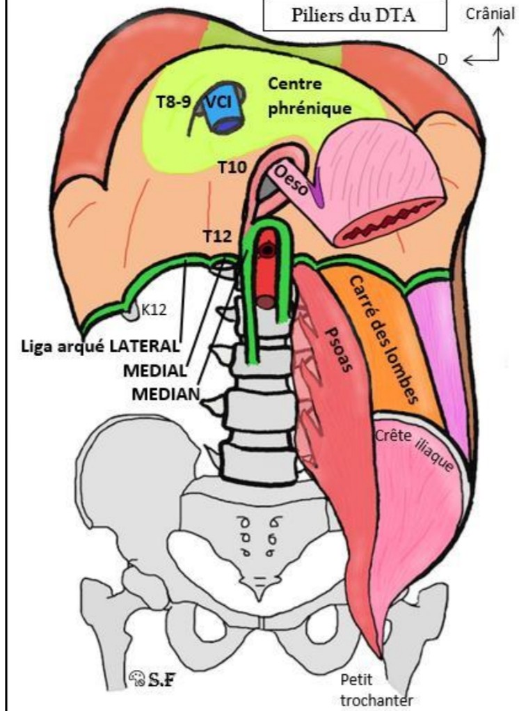 Anato'Miss a écrit:Les hiatus aortique et œsophagien se trouvent sur la portion lombale charnue (verticale), sur la pente diaphragmatique .