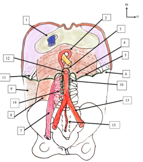 Papatutti a écrit:tu vois ici ton hiatus oesophagien qui est la fleche n°2, on voit bien qu'il est au niveau de la partie lombale