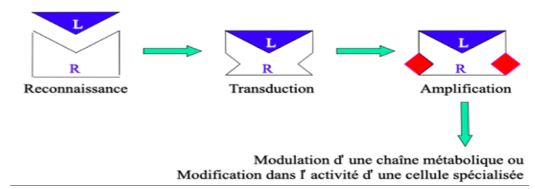 Dans les interactions ligands-Rc, on dit que lors de la transduction "il y a une modification allosterique : modification de la conformation du Rc