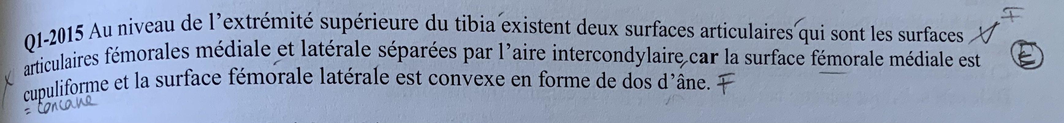 car la surface fémorale médiale est cupuliforme (concave) et la surface fémorale latérale est convexe en forme de dos d’âne.